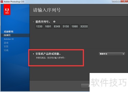 6、 四、可跳过Adobe ID选择,再选定安装路径,然后确认安装。