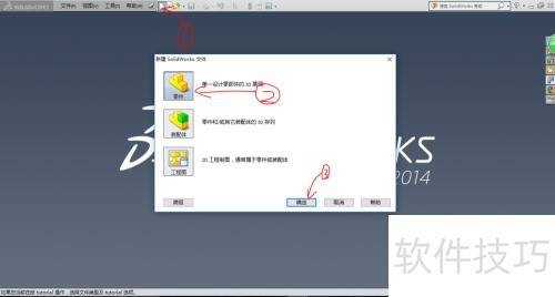 1、 打开SolidWorks,会看到空白界面,这很正常,因为还未新建文件,所以首要的就是新建一个零件图,就像图中展示的那样。
