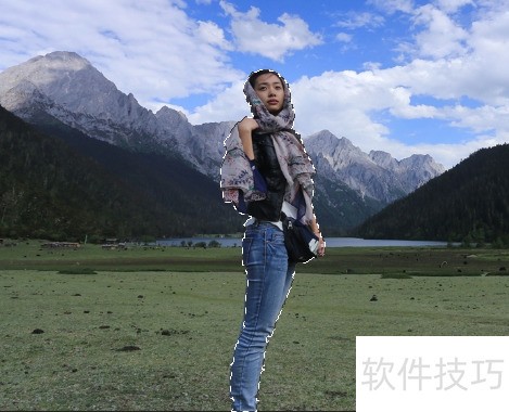 2、 用选区工具(如选取画笔工具)选出美女,效果。