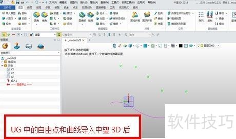 2、 中望3D2014 SP版支持导入自由点、曲线以及其他软件格式的图层,工作起来更加轻松。当前,三维CAD软件导入其他文件格式时,一般只能导入数据里的片体和实体部分,含自由点和曲线的数据仅能通过IGS格式导入。但IGS格式有个缺点,所有实体转换为此格式后都变为片体,再次导入软件时会大大增加修补工作。中望3D发现这些问题后,着力研发,改变了这种状况,在该版本中可自由导入导出自由点和曲线,工作更轻松高效,所示。
