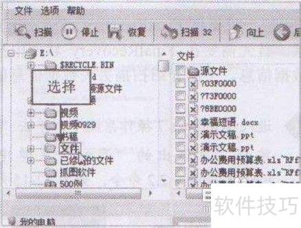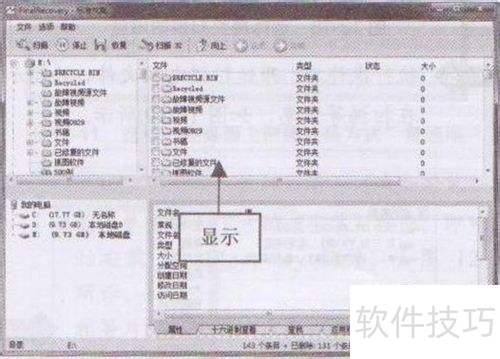 3、 显示扫描结果后,在左上方窗格中选择要恢复的数据文件夹,3所示。