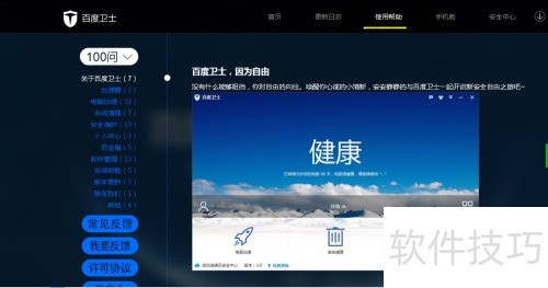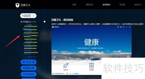 5、 页面左侧通常能找到解决网络卫士使用中遇到的问题的答案。