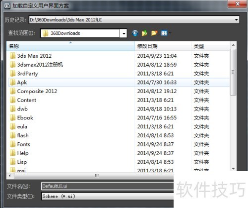 4、 在已打开的加载自定义用户界面方案窗口里,查找3dmax的安装路径,我的3dmax装在D盘,要找到3DMAX。