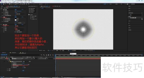 12、 发现身体上有很多细小粒子,我们能对粒子层和光晕层预合成(选第二个),给预合成加蒙版,蒙版羽化值设为81且反转,这样就完成了。