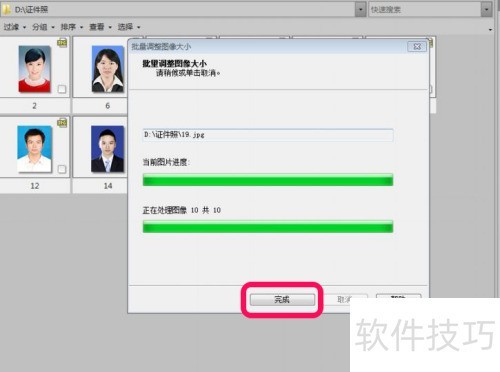 6、 在批量调整图片大小窗口里先点击开始调整图片大小,再点击完成即可。