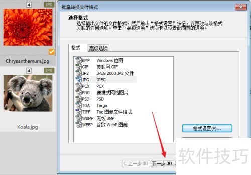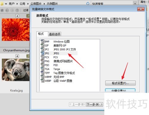 3、 使用ACDSee看图软件进行批量转换时,若要压缩图片大小而非改变格式,可选择原格式,之后再进行格式设置操作即可完成相关调整。