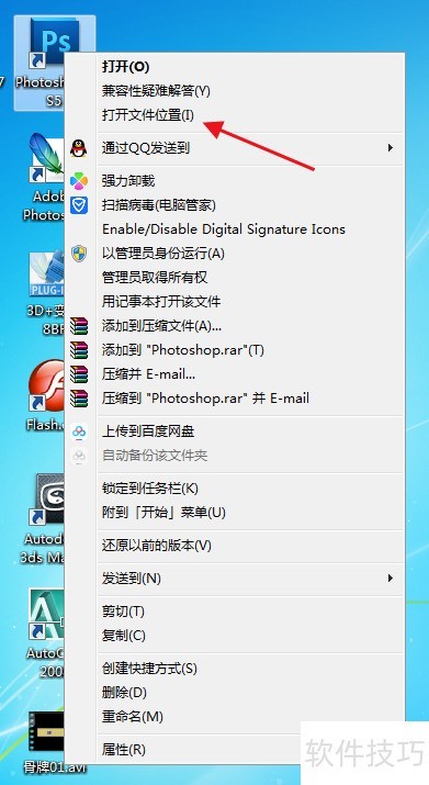 3、 PhotoshopCS5快捷键,右键单击,选择打开文件位置。