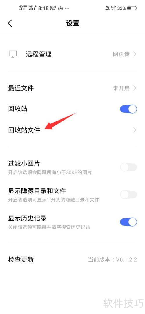 2、 进入设置页面后,点击回收站文件。