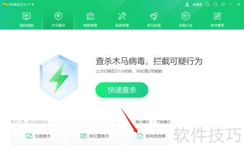 360安全卫士怎么开启系统急救箱?
