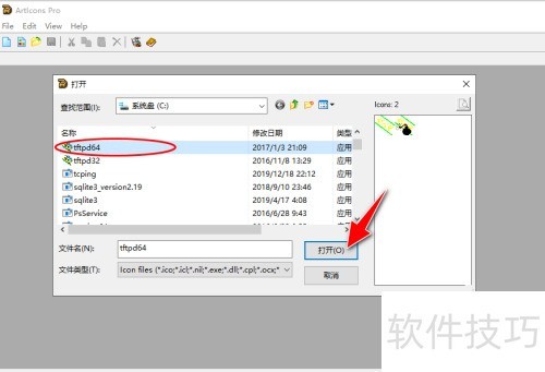 4、 之后,打开对话框会弹出,在本地电脑选一个带图标资源的exe可执行文件,接着点击打开按钮。