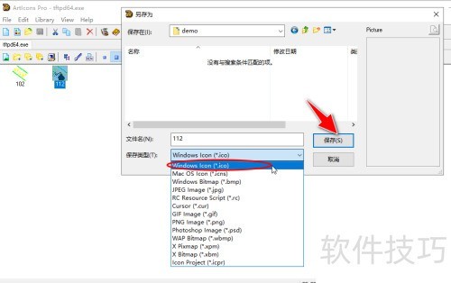 6、 会弹出另存为对话框,选取如Windows Icon(*.ico)之类要保存的图标格式,然后点击保存按钮,就能把ico格式图标保存到本地电脑了。