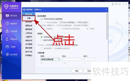 4、 打开设置中心,点击侧边的杀毒选项。