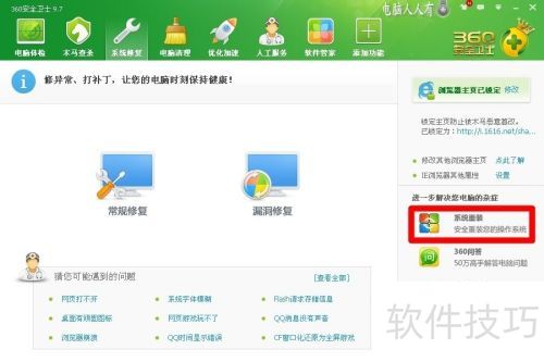 Windows操作系统极为庞大,又常受病毒、木马等不良程序侵扰,出问题是难免的。若系统安装了安全、优化软件,碰到异常时不妨用一下里面的专用工具,往往能轻松解决问题。