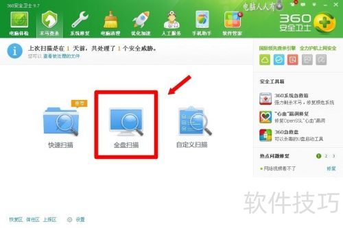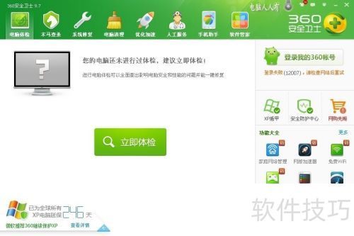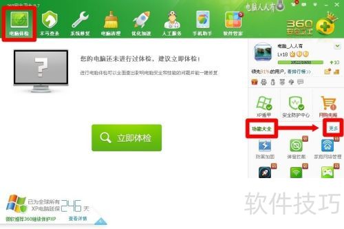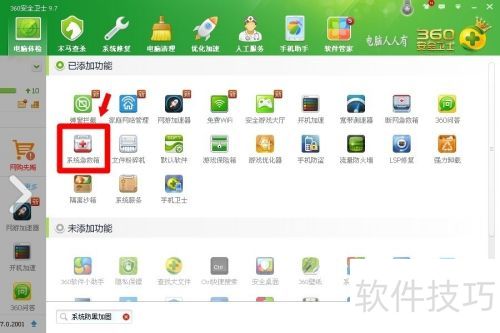 2、 360安全卫士主界面,电脑体验下功能大全里有系统急救箱。