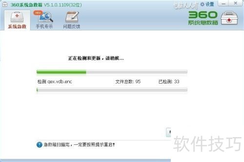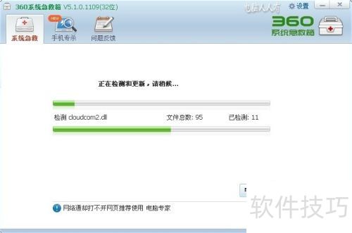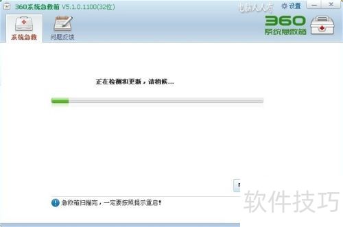 9、 耐心等检测结束,最后系统急救箱修复界面才会弹出。