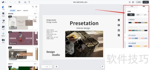 3、 属性包含主题、配色和字体,能依自己喜好的风格进行选择。
