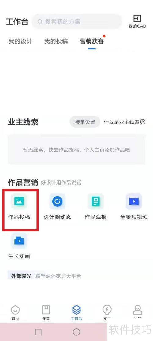 打开酷家乐,进入工作台编辑作品,上传手机文件,完成投稿提交。
