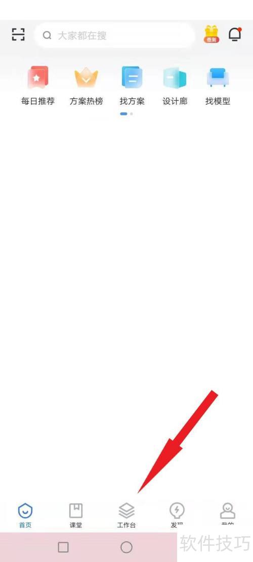 1、 打开酷家乐APP,点击底部的工作台选项。