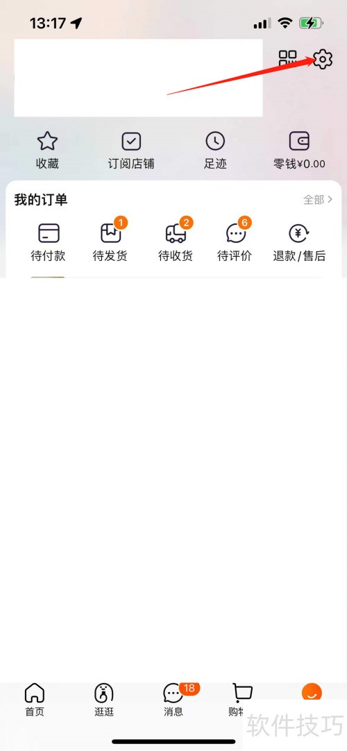 2、 淘宝个人页面打开后,点击右上方小齿轮图标。