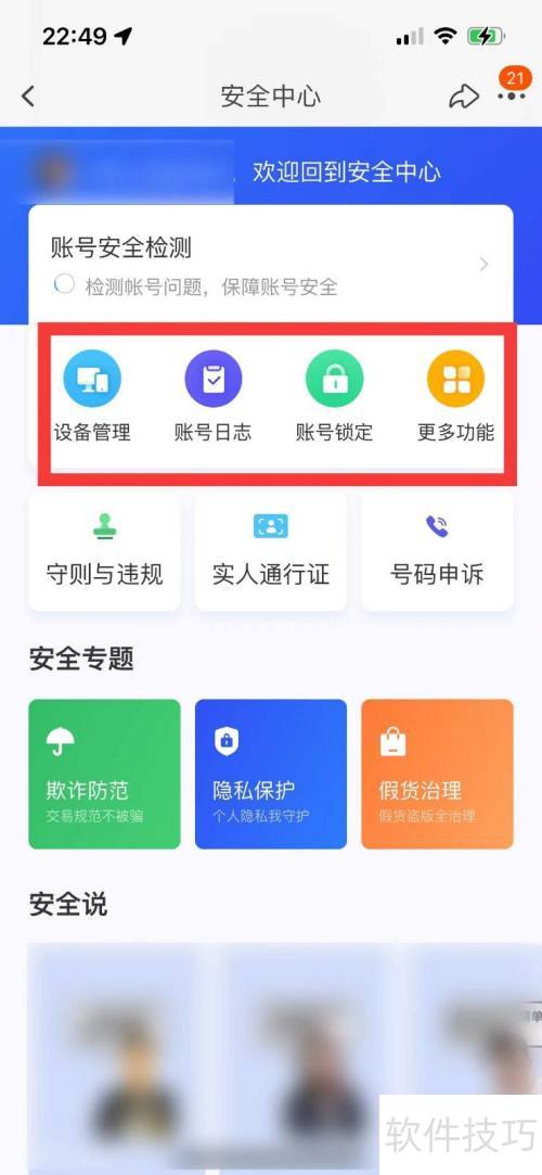 8、 这里便是安全中心页面,选择相应操作点击即可。
