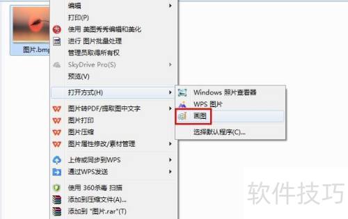 2、 首先,选择一张bmp格式图片,右击后选择打开方式中的画图工具。