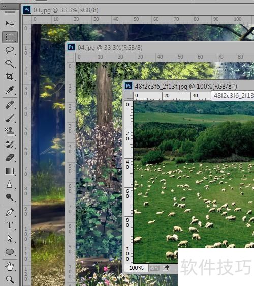 1、 使用Photoshop CC打开图像时,选项卡模式默认为合并状态。