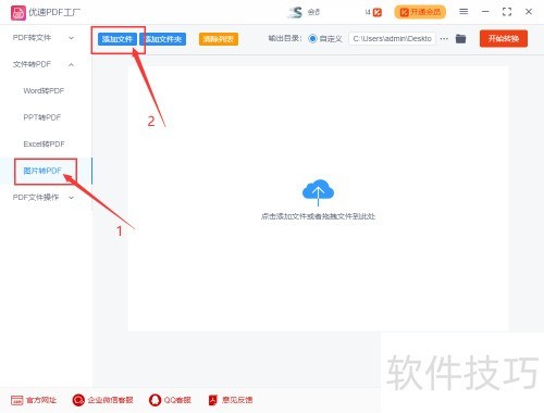 1、 步骤一,开启电脑后打开优速PDF工厂,打开软件后点击,进入内页选择功能,接着点击按钮,把要转换为pdf的bmp图片全添加到软件里,该软件可批量添加与导入。