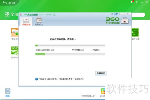 360系统急救箱适用于电脑出现问题且杀毒无效时。它能快速定位系统待修复之处,以下为09操作演示。