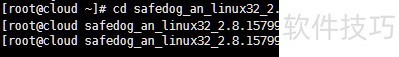 4、 进入服务器安全狗的目录(可先用ls -l命令查看目录名,安装版本可能不同),设置权限后开始安装。