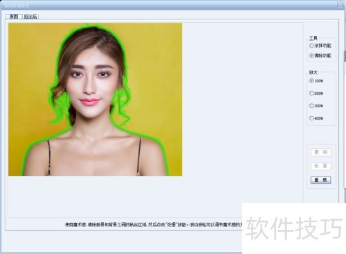 7、 背景处理时具备涂抹与清除功能,涂抹用于画出抠图范围,清除可擦掉抠图范围,鼠标滑轮能缩放涂抹/清除光标。