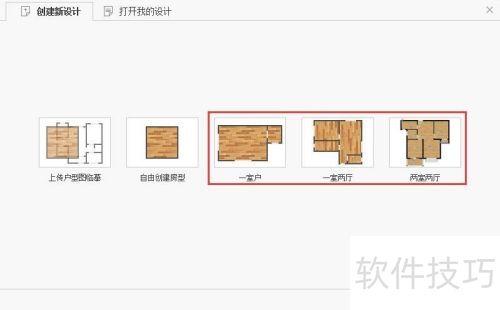 12、 在软件左上角菜单栏,依次选择文件、新建设计,然后上传户型图进行临摹。