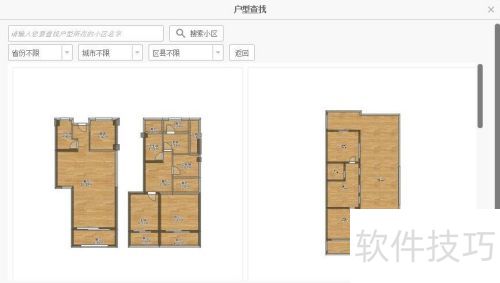9、 通过输入现有小区名称,或按省份、城市、区县筛选,定位目标小区及户型。