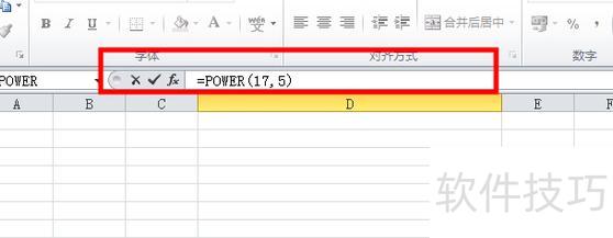 也可跳过第一步,直接在单元格中输入公式:=POWER(数值,幂),其中数值为底数,可为任意实数,幂为指数。例如计算17的5次方,只需在单元格输入=POWER(17,5),按回车即可得出结果。