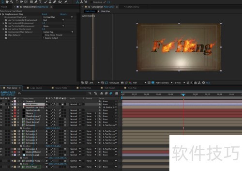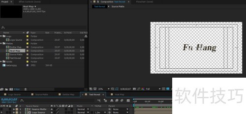 7、 当然,还有文字层 Luma Matte 分形噪波层这一合成效果。