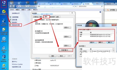 2、 在Win7系统中,将Maya设置为中文版需右键点击计算机,依次选择属性、高级系统设置和环境变量。