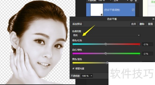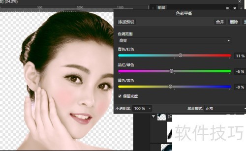 18、 美女面部高光较多,可把步骤5的高光适当添些红色,让面部更红润,所示。