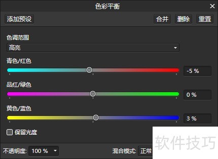 16、 眼睛与眉毛往往也是偏黑色的,如同调整头发那样,可适量添加青色和蓝色。依旧运用色彩平衡命令,分别调整阴影、中间调与高光,所示。