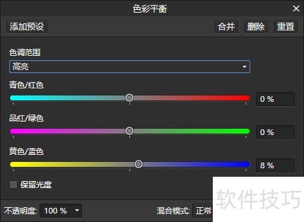 6、 所示为对高亮部分的参数调整。
