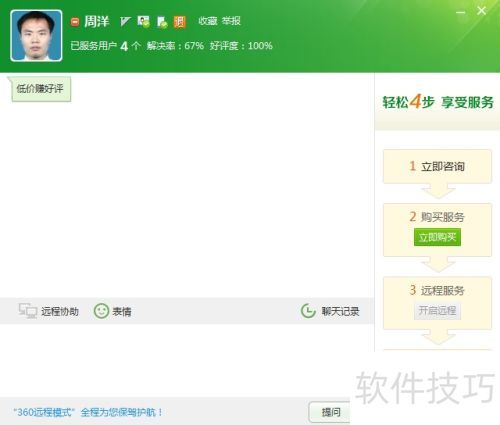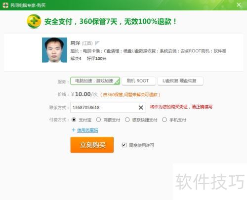 5、 弹出的对话框支持开机交流,右侧流程图显示,付款后方可远程操作电脑。点击立即购买,进入付款页面。