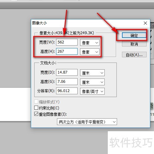 7、 调整图片尺寸数值后确认,注意,必须修改数值才能生效。