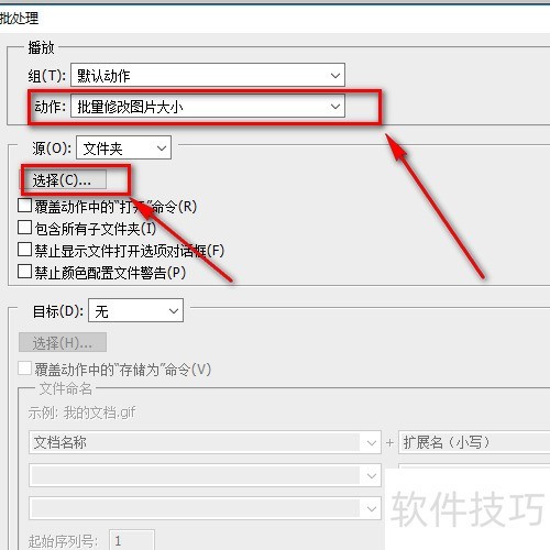 11、 所示,选取之前记录成功的动作,接着选择文件夹。
