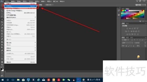 1、 打开PS软件,于文件菜单中打开要处理的照片。