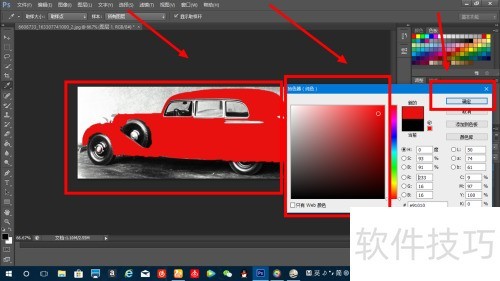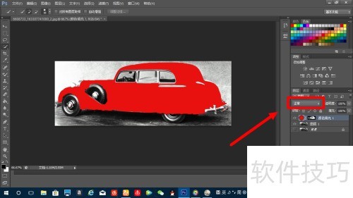 4、 由于是演示,小鱼只粗选车身区域上色。小哥哥小姐姐们处理时,用此方法对不同区域细致处理就好啦。