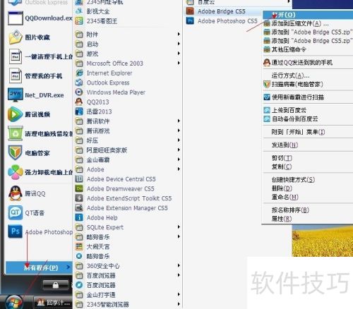 5、 让它完成就行。打开ps后,点击文件,再点击在bridge中浏览,可能此时无法打开,那就点击开始所有程序,打开adobe bridge cs5,之后打开文件点击泛扬bridge就能使用了。