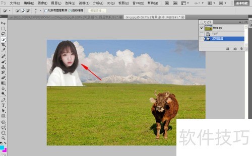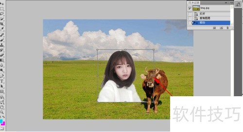 8、 按Ctrl键能将抠图移至所需之处,按Ctrl+T可调节图片大小。