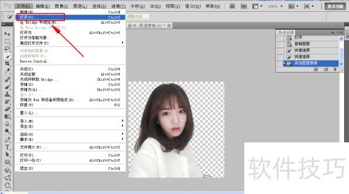 6、 这时点击菜单栏的文件,打开要添加抠图的图片,所示。