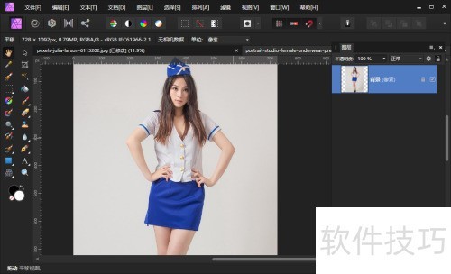 1、 打开Affinity Photo,加载需调整的图像,展示。