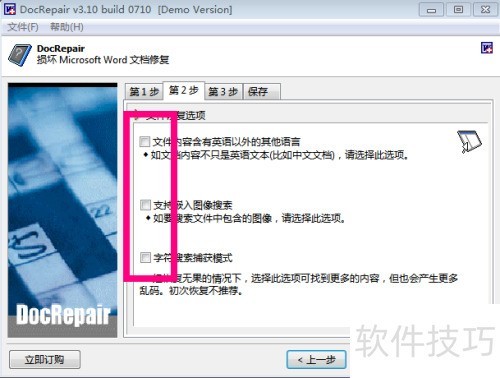 3、 点击下一步后,依据文档内容的实际状况(如包含英文、图像等)来选择选项,然后再次点击下一步。