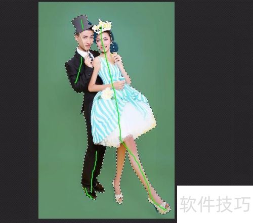 8、 用画笔在所需图片上绘制线条,最终获取目标选区,效果展示。