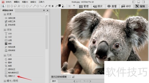 2、 acdsee看图软件编辑功能很实用,快赶上photoshop了,要调整大小的话,在左侧几何选项里选择就行。